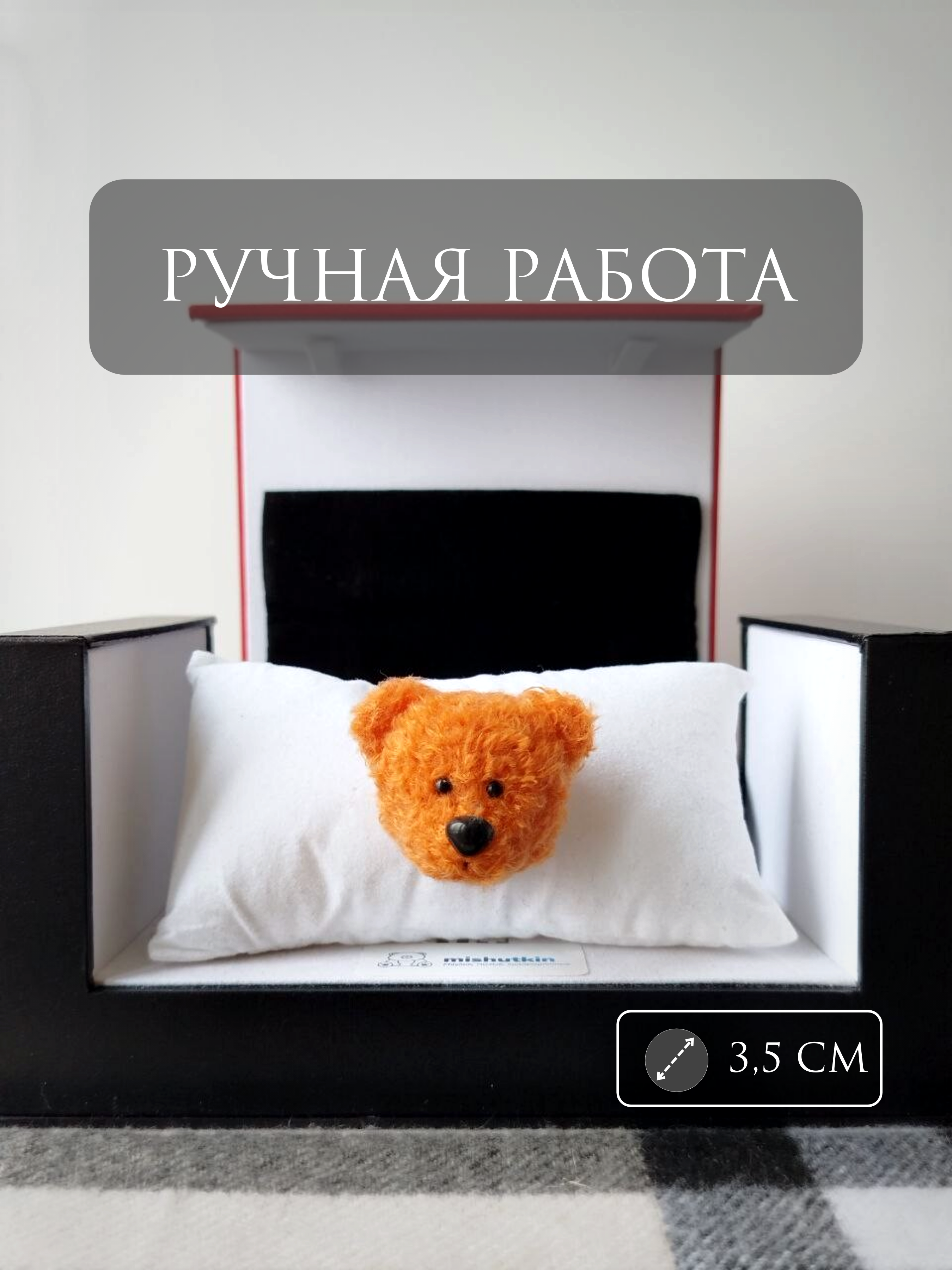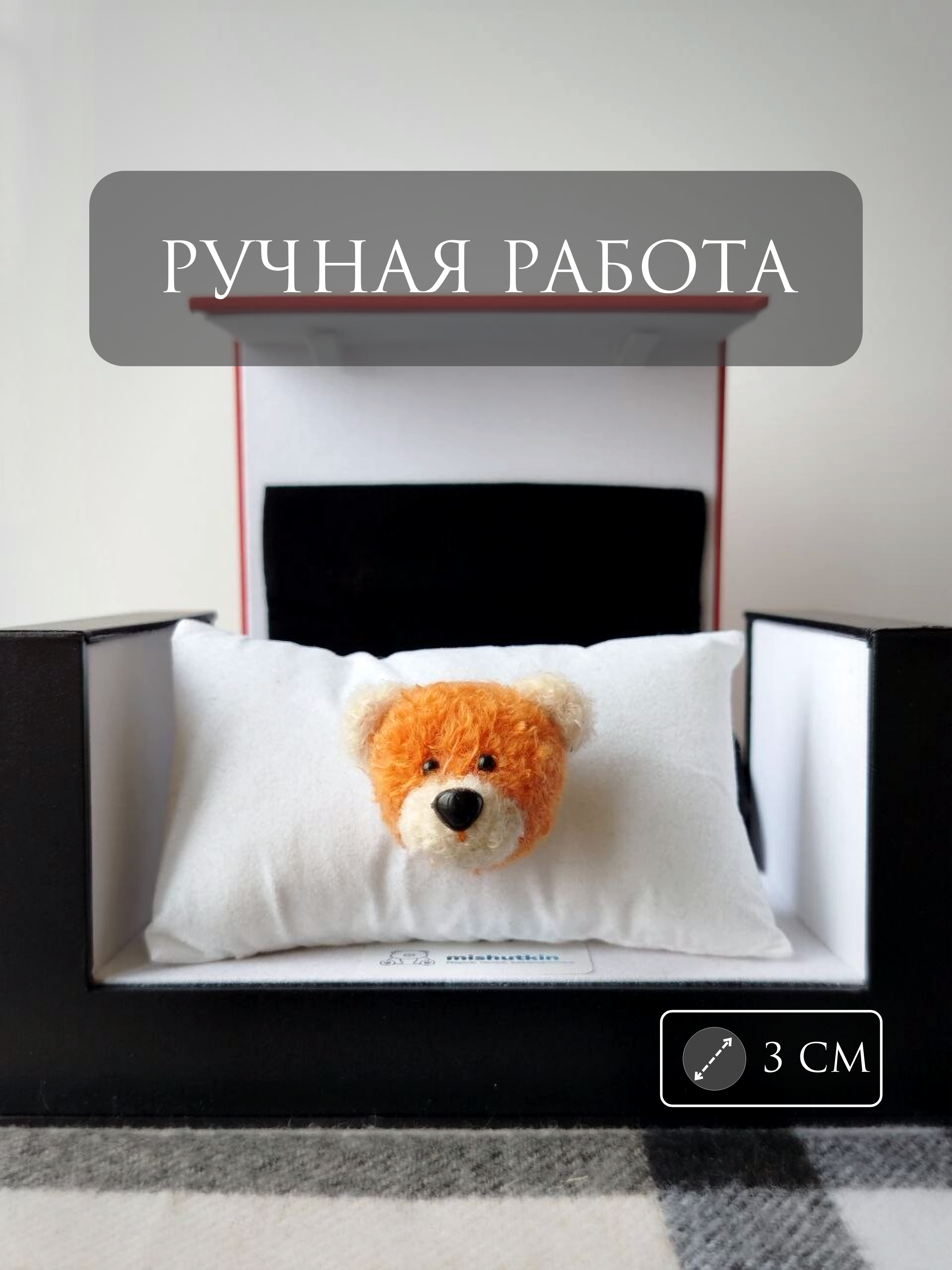 Мишка-брошка Оранжевый/бежевый – Orange Beige. 3 см. Adelia Baby Toy. 100% Nylon.