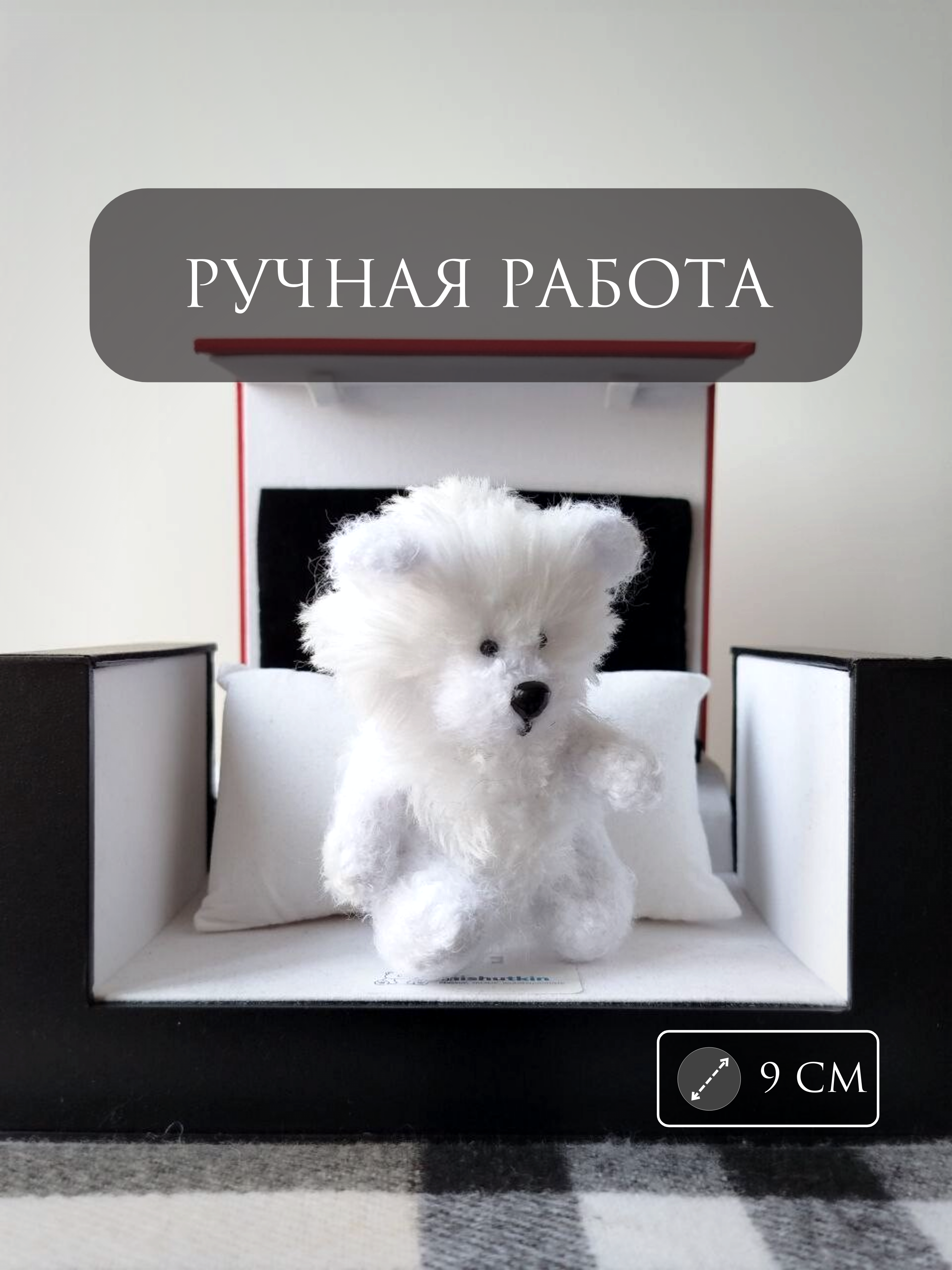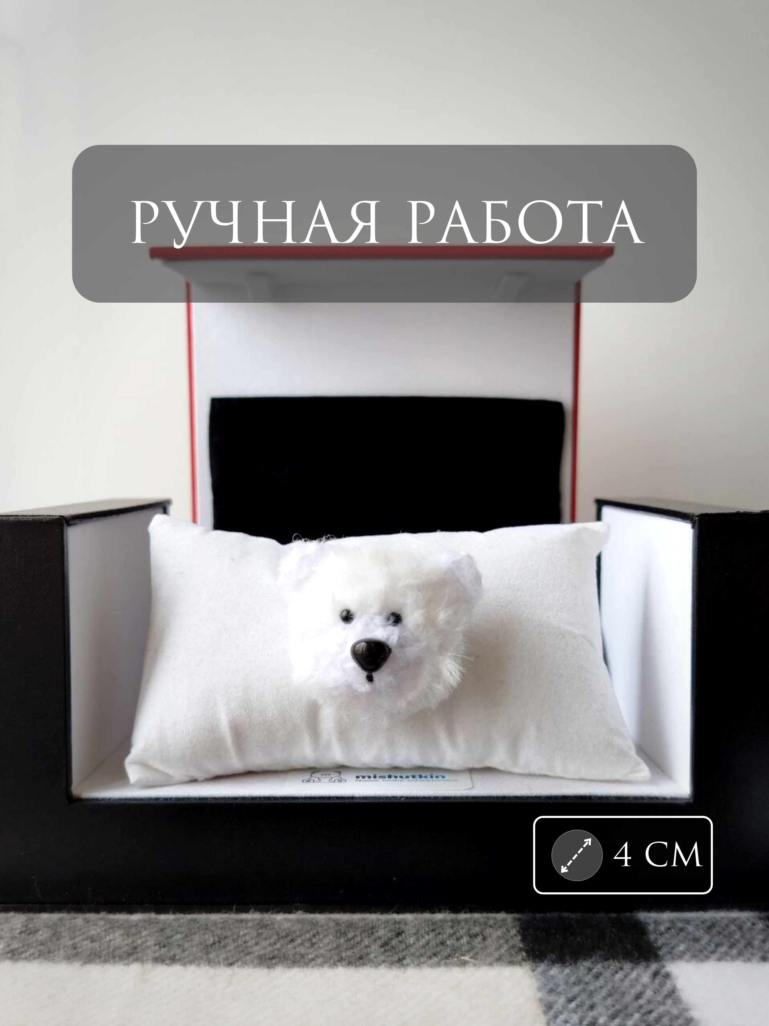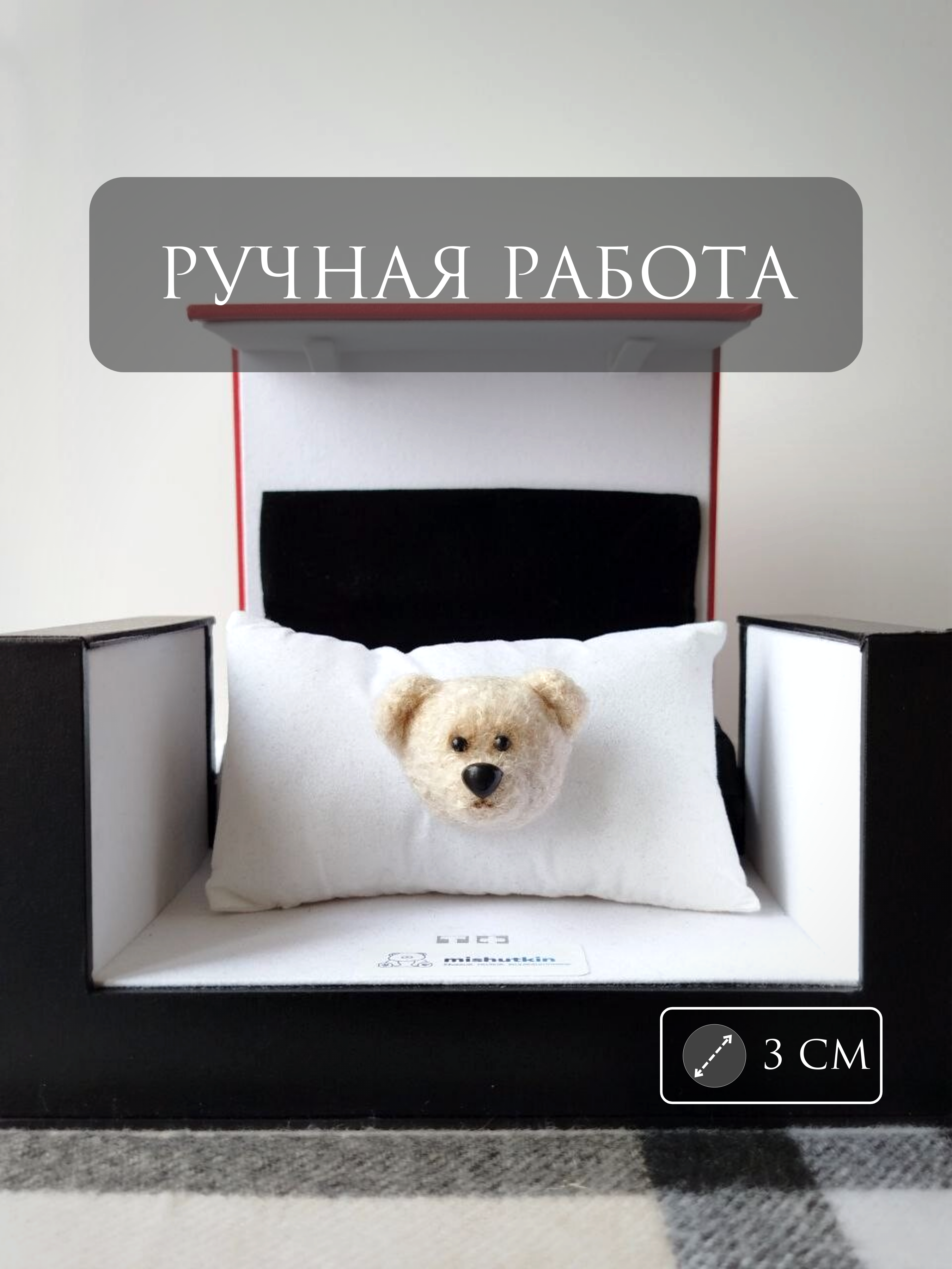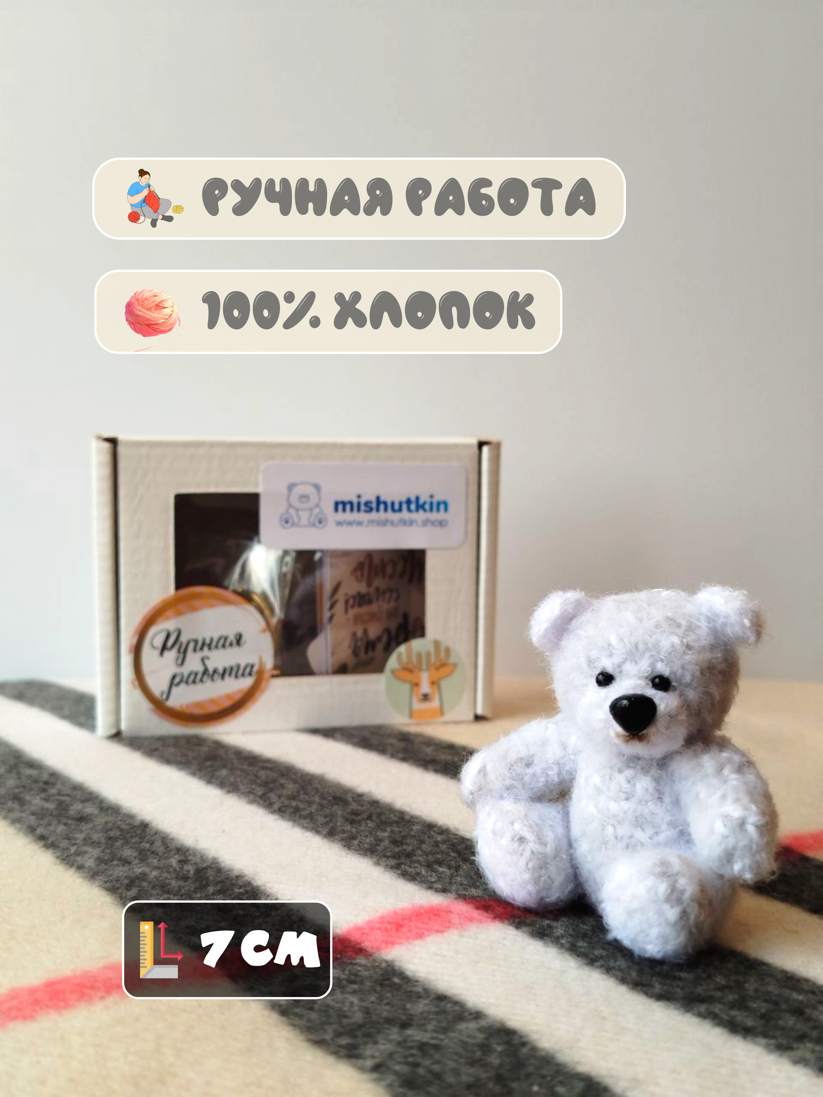 Мишка-брошка Мягкий Белый – Soft White. 3 см. Comtecs Premium Series 65% Cotton / 35% Polyamide
