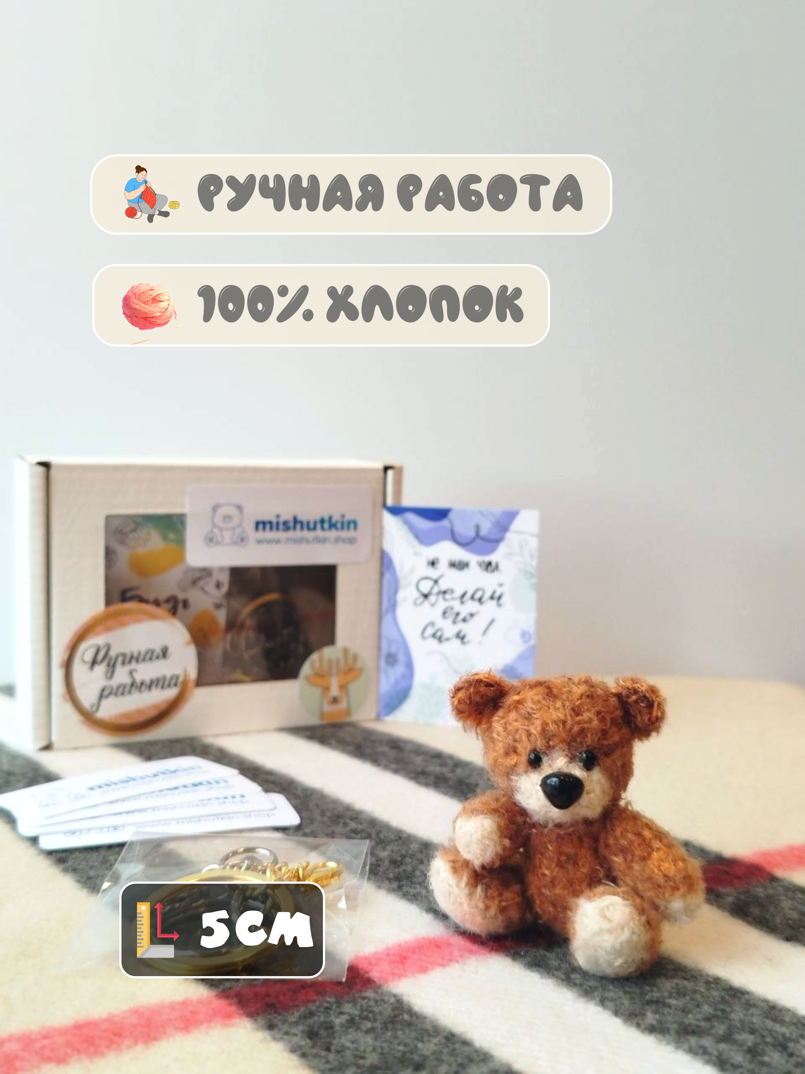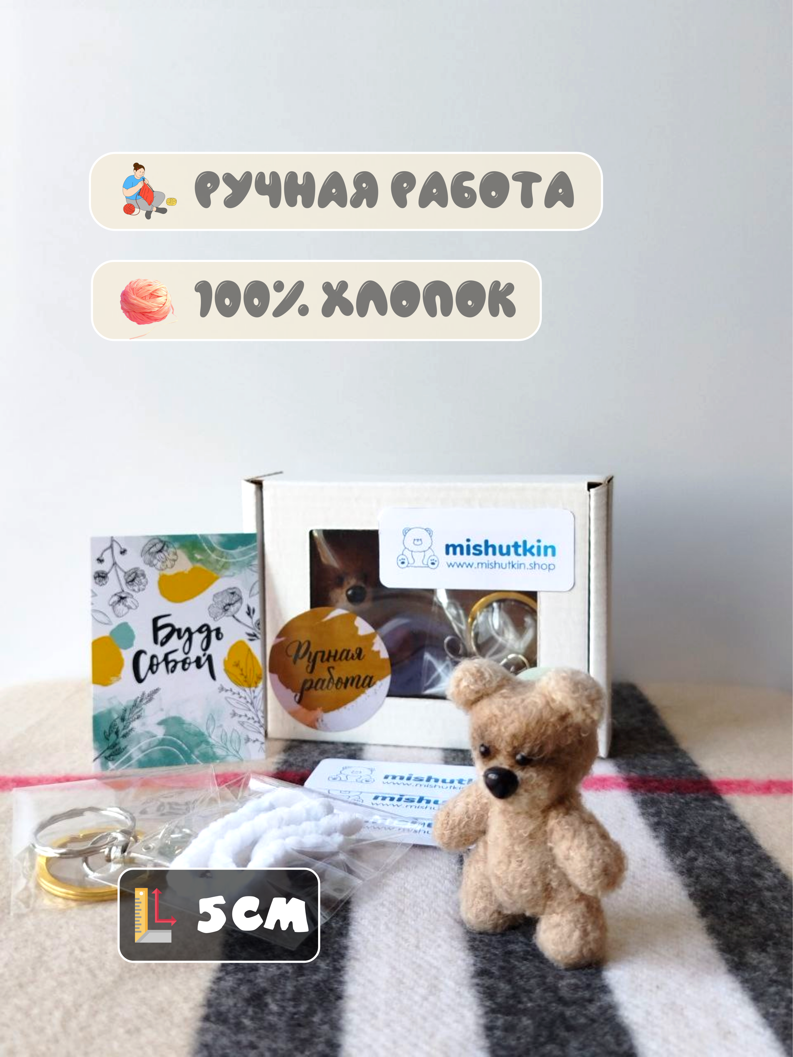 Мини-мишка брелок ручной работы. 7 см. 100% хлопок