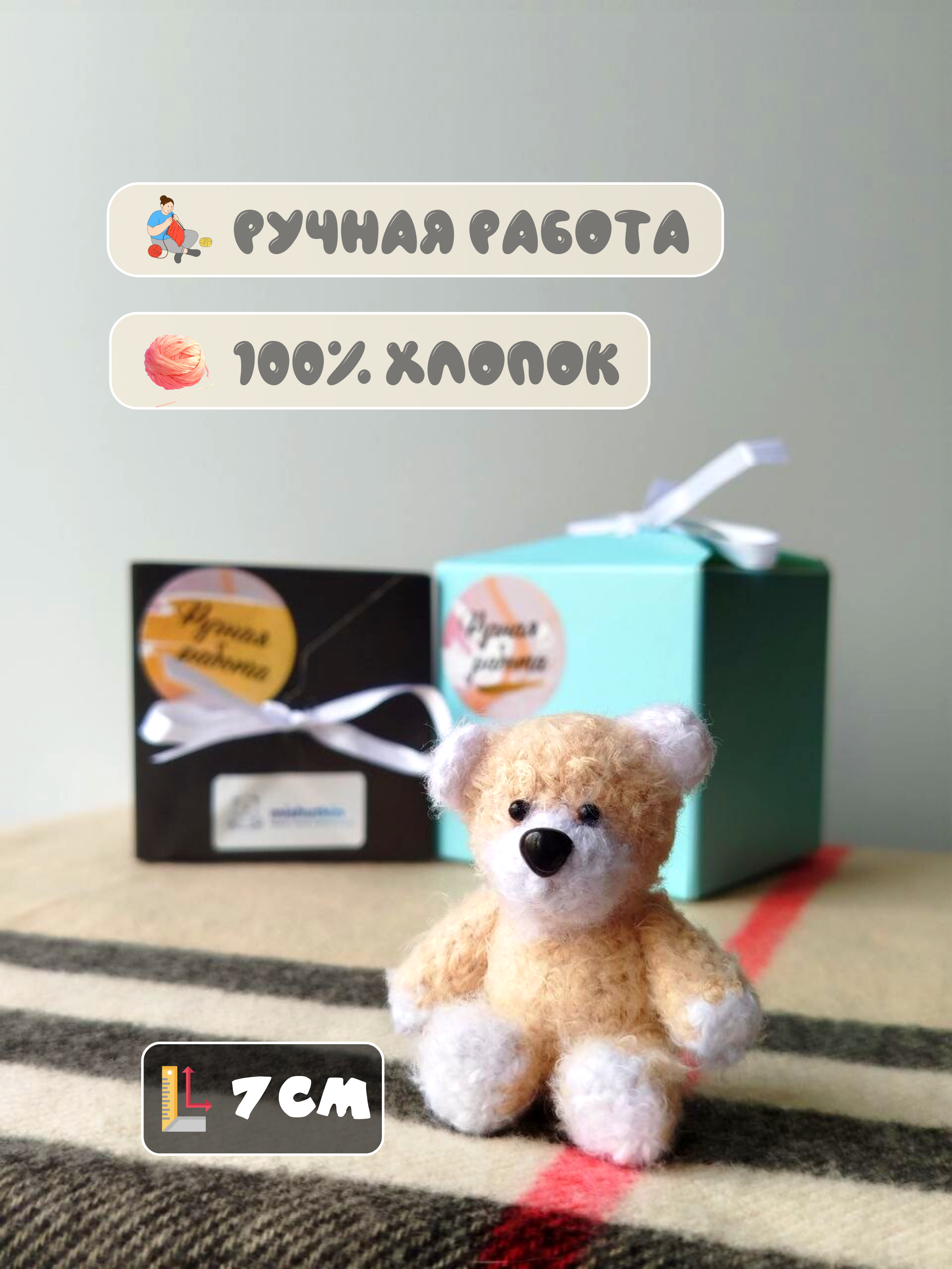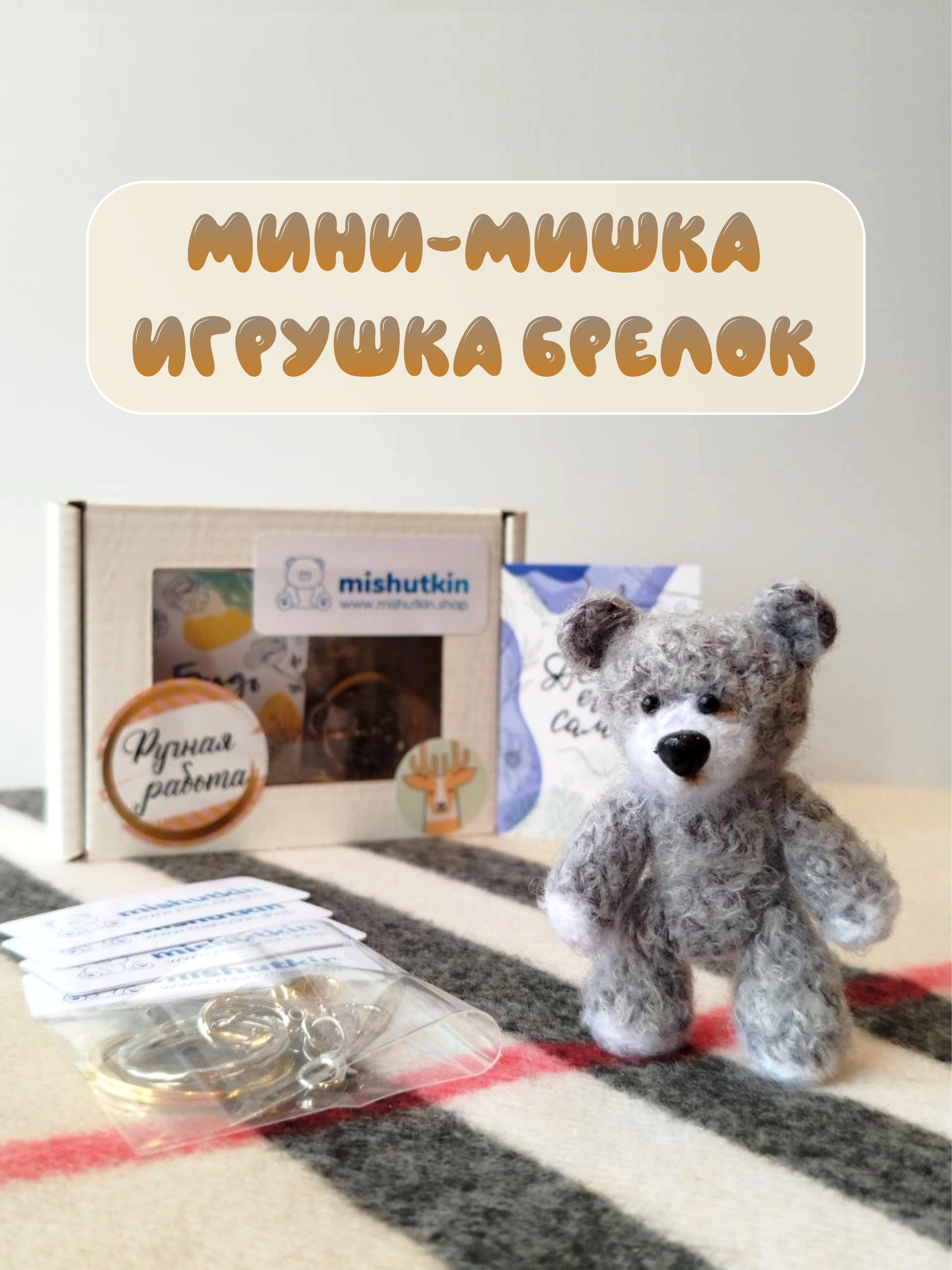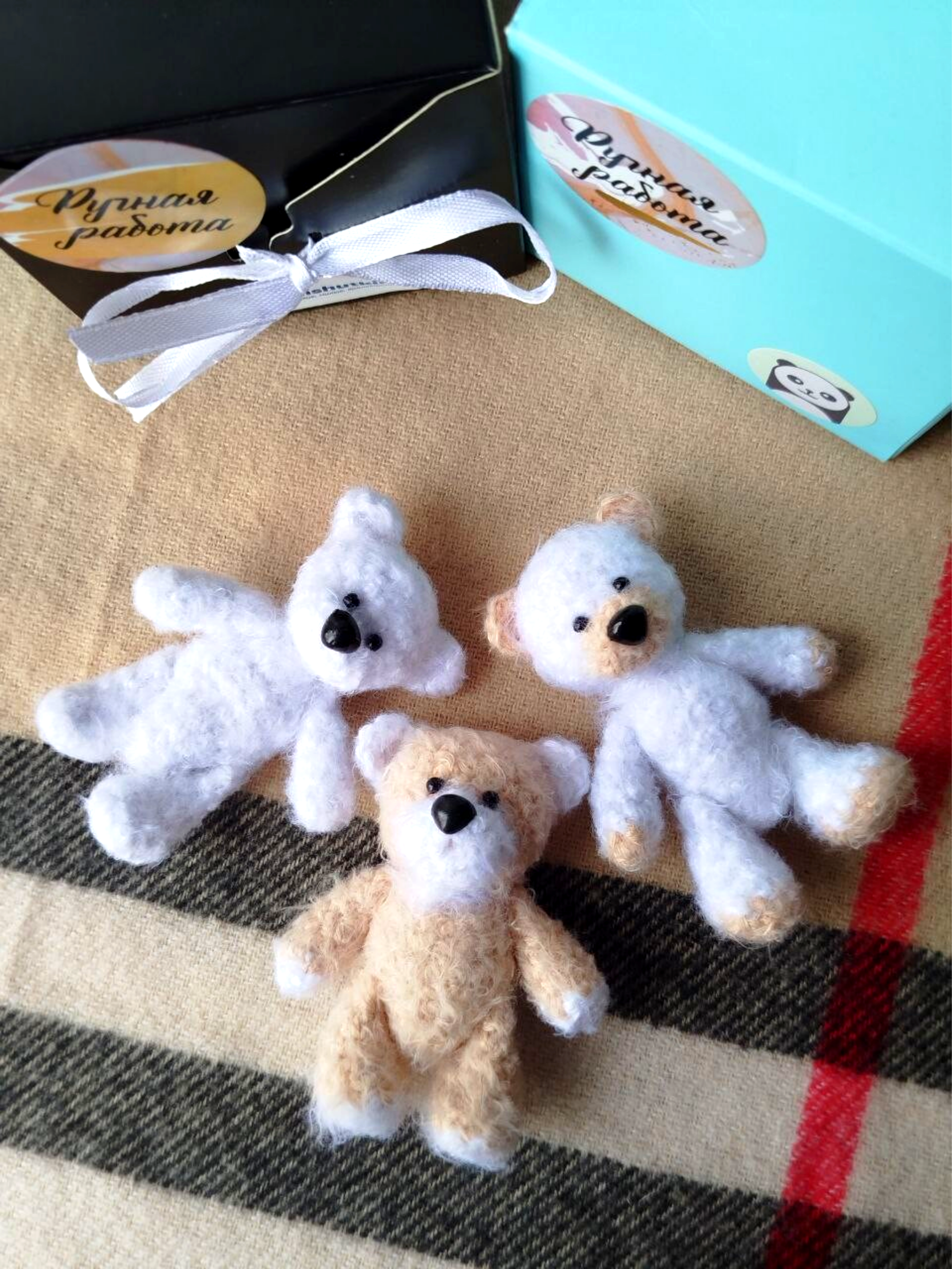 Набор из 3 игрушек. Мини-Мишки брелки ручной работы. 7см.