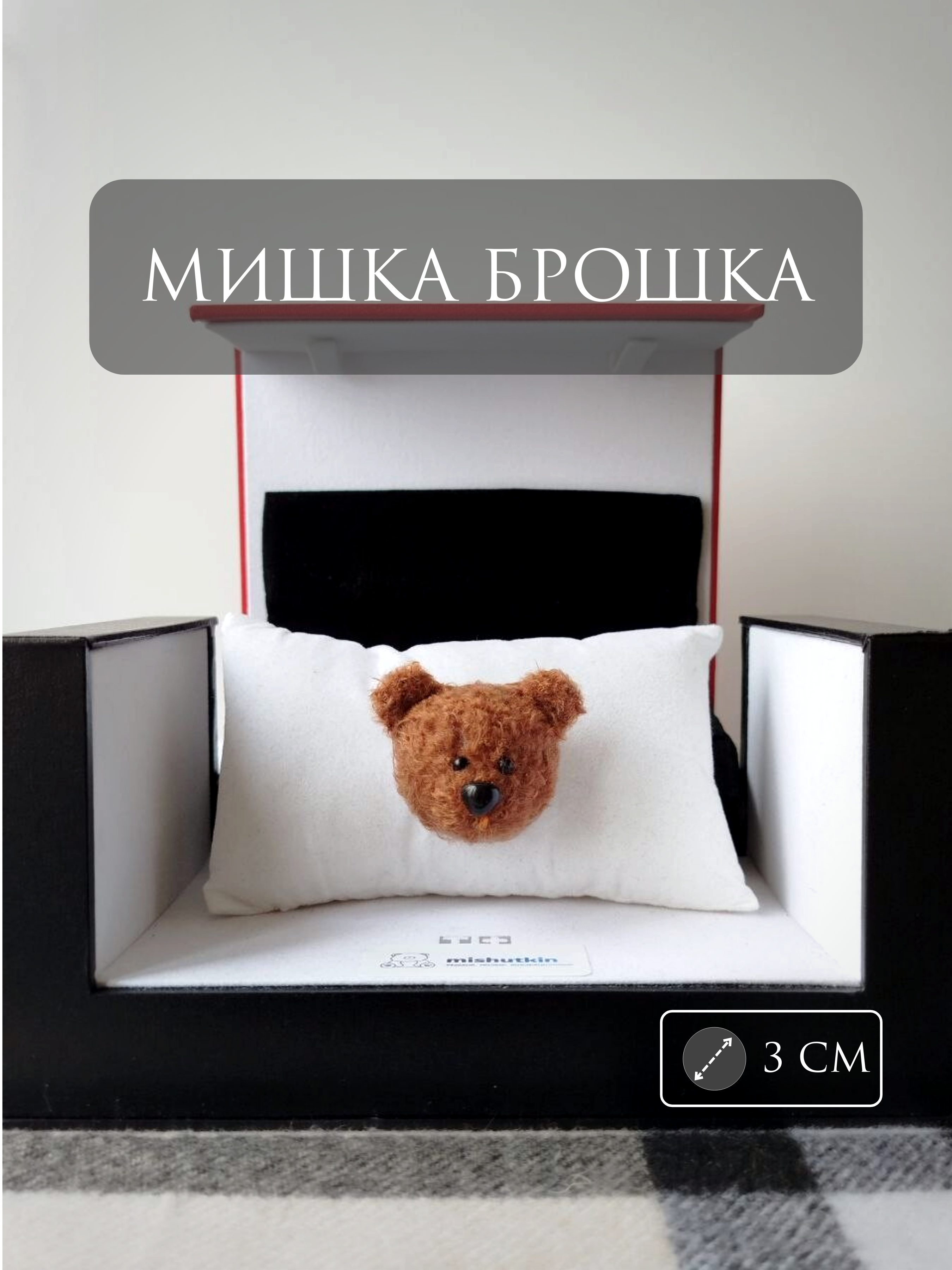 Мишка-брошка Глубокий коричневый – Deep Brown. 3 см. Adelia Baby Toy. 100% Nylon.